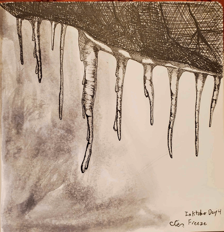 Well this was a fun one. All sorts of ideas rolling through my head. Settled on icicles on the underside of a rock. I’m finding that doing something small that I can do well while pushing my limits a little is more satisfying than trying to do something larger and stressing over whether I will be able to finish it or it looks horrible. I’m happy that the icicles look like icicles. 🙂